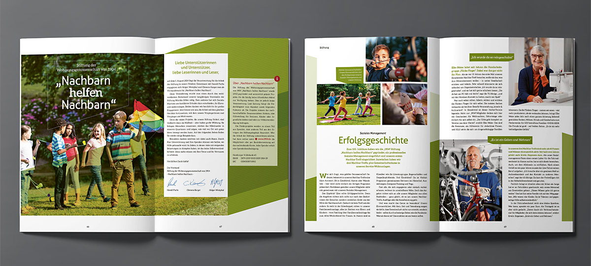 Layoutkonzept, Seitenkonzeption und Umsetzung, Umfang 112 Seiten, Korrektorat, Produktionsbetreuung